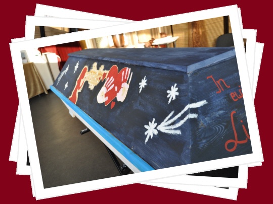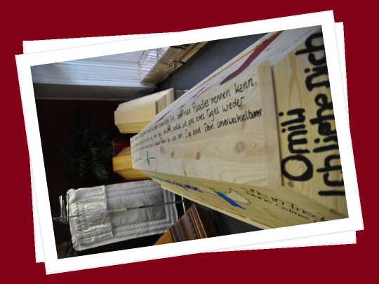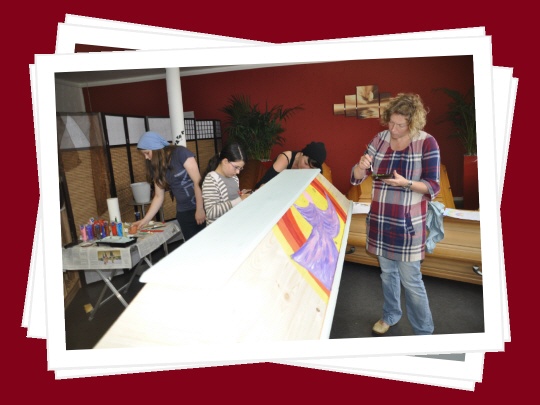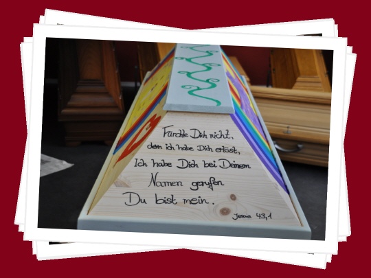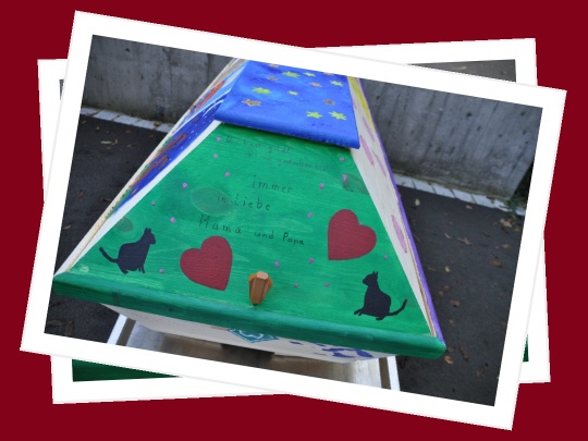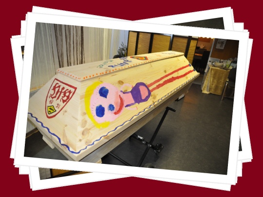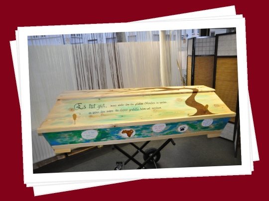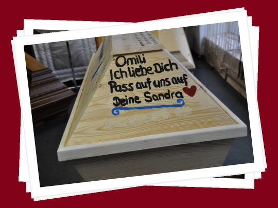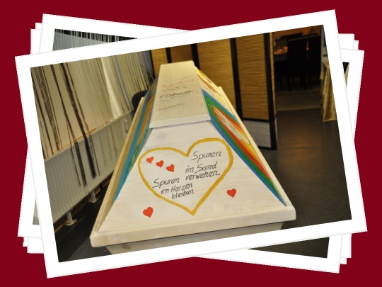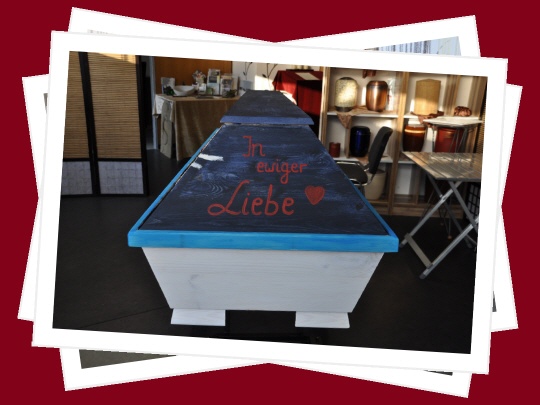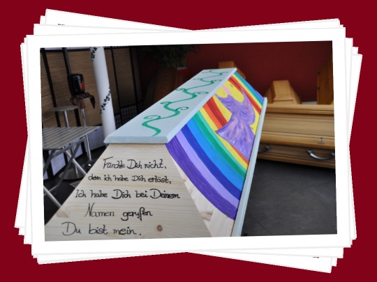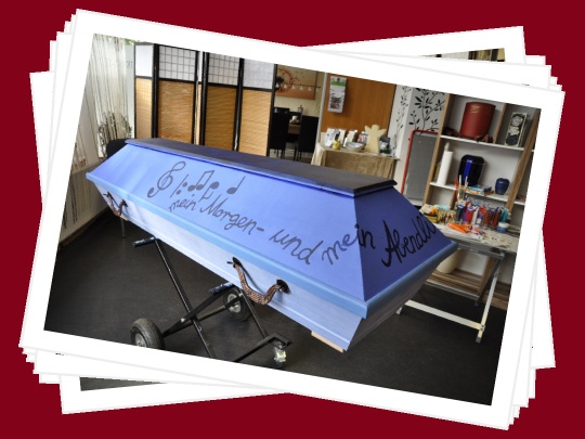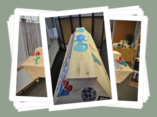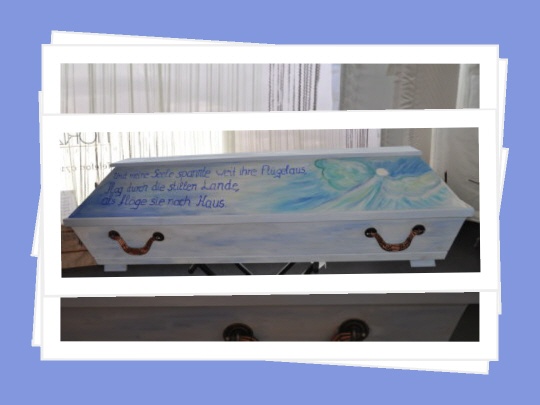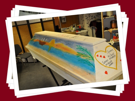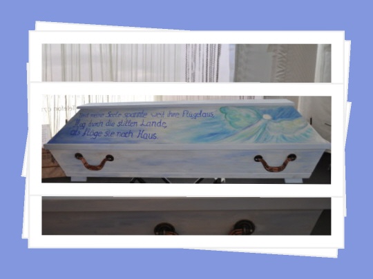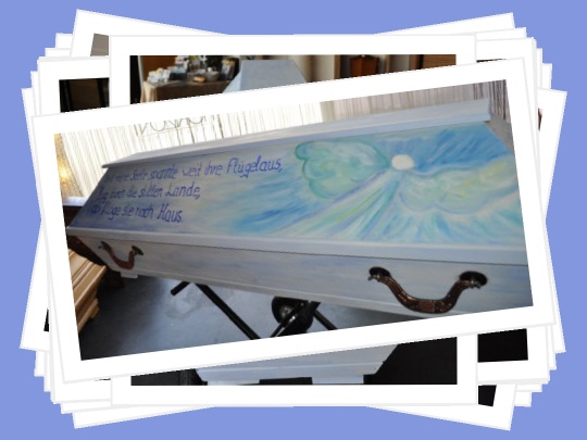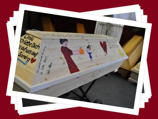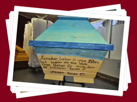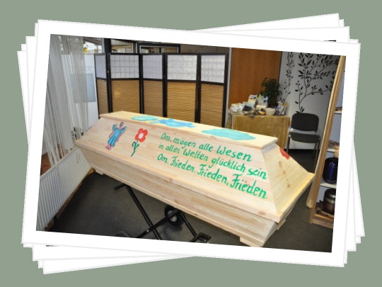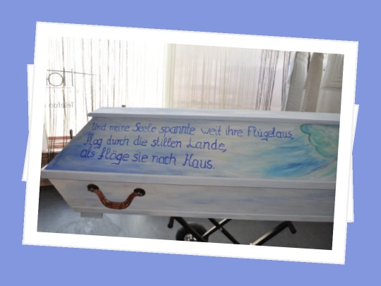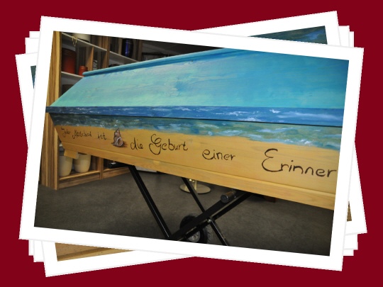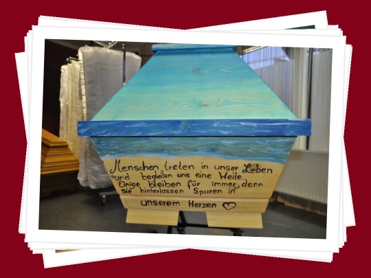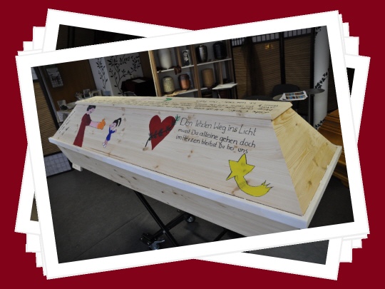 Trauerarbeit und Trauerverarbeitung ist eines unserer großen Hauptaugenmerke. Um nach einem schmerzhaften Verlust nicht in die Schockstarre zu verfallen und direkt in die Trauerverarbeitung zu kommen, bieten wir bei uns die Sargbemalung an.